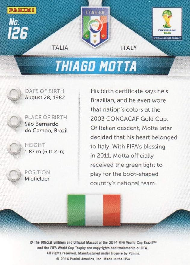 2014 Panini Prizm Fifa World Cup Soccer 126 Thiago Motta Italy At Amazon S Sports Collectibles Store