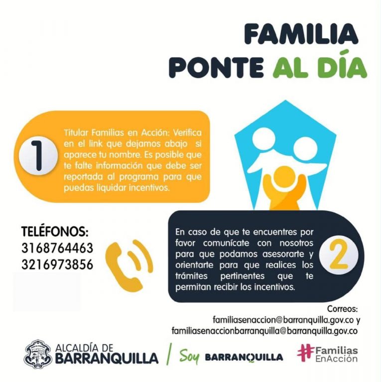 Familias en accion barranquilla. Nosotros te recomendamos comunicarte con cualquiera de los números de teléfono de atención al cliente de Familias en acción en Barranquilla. Aquí te vamos a dar todas las fechas del próximo pago de familias en acción también te explicaremos en donde se paga cuanto es el incentivo y cuanto paga prosperidad social por cada niño te recomendamos leer el articulo hasta el final por que la información que te daremos es muy valiosa. La primera etapa de inscripción del programa Familias en Acción ya arrancó en Barranquilla.